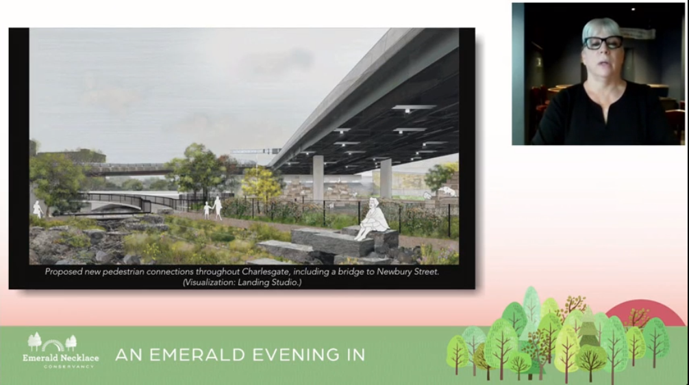 Pam Beale of the Charlesgate Alliance joins other park advocates to help present the Olmsted Award of Excellence to Mayor Walsh by sharing the impacts of some of his Administration’s historic investments.
