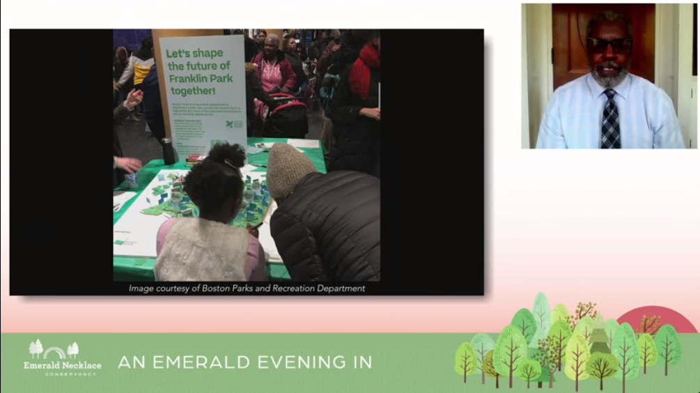On October 14, 2020, the Emerald Necklace Conservancy hosted its signature biennial fundraiser, Emerald Evening, in celebration of the Conservancy’s advocacy and improvements in and for the Emerald Necklace. The universality of parks and their critical role in individual and collective health has never been more pronounced than this year, and we are proud to shine a spotlight on the 1,100 acres of Emerald Necklace greenspace that have been serving Boston and Brookline residents for over 100 years, and the organization that stewards and advocates for this park system.