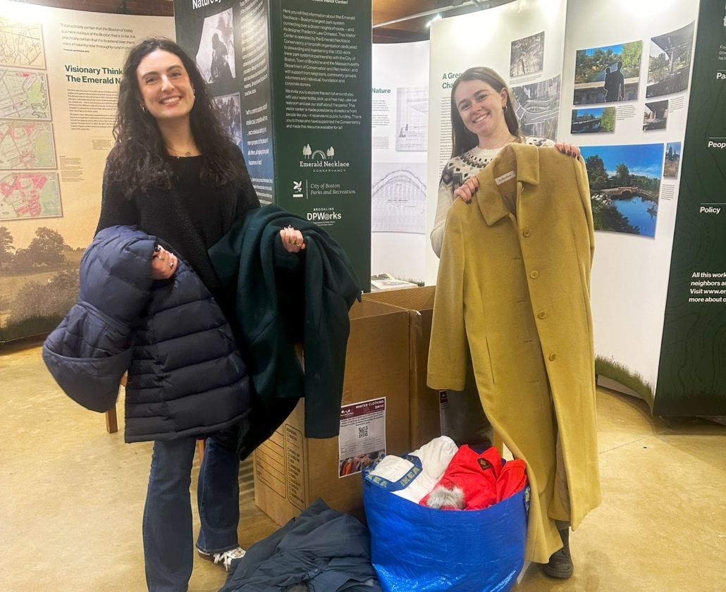 Since 2021, the Emerald Necklace Conservancy has collected over 3,000 items of cold-weather gear for Action for Boston Community Development.